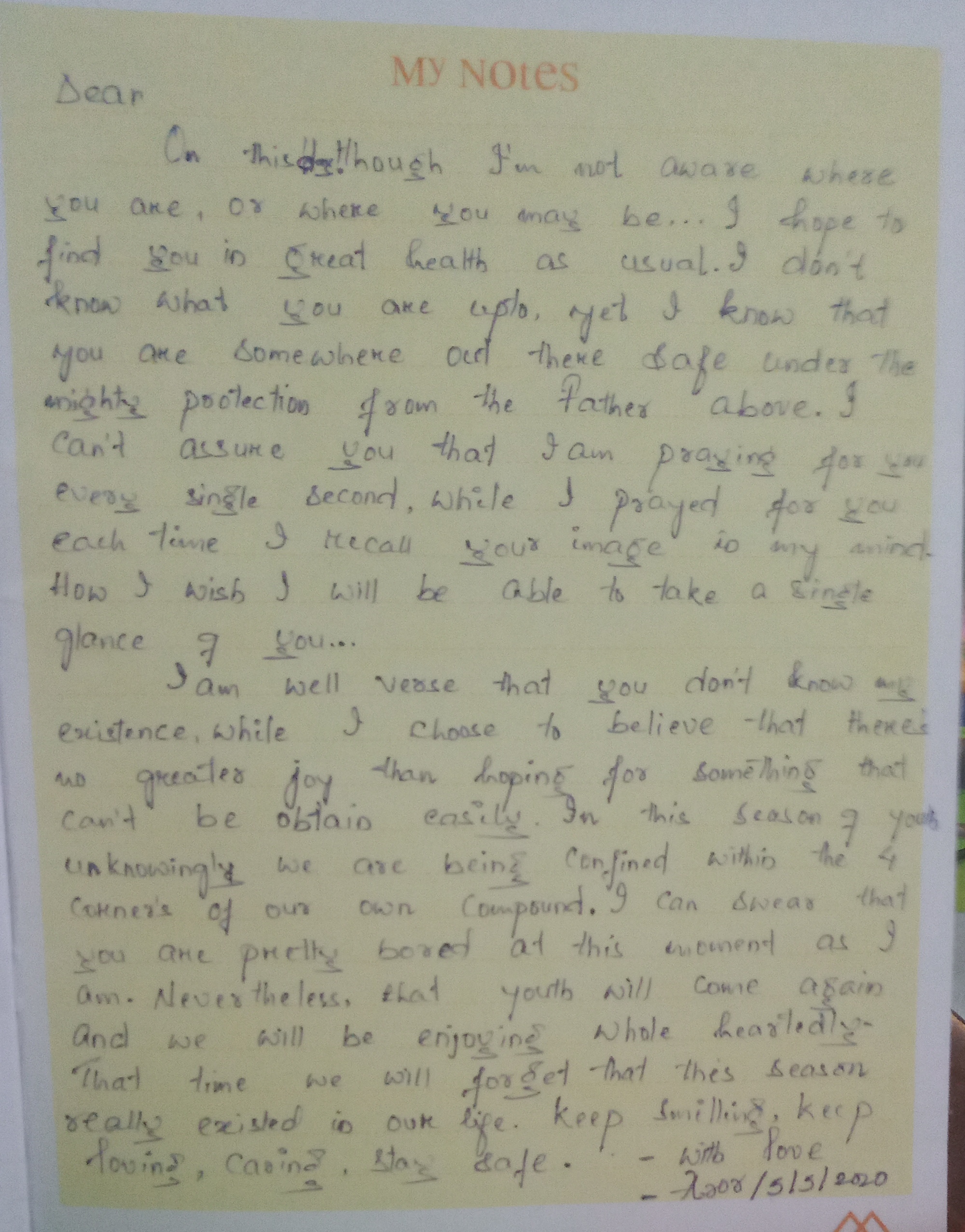Stay safe! Be safe! #mydear #lovingyou #loveletter